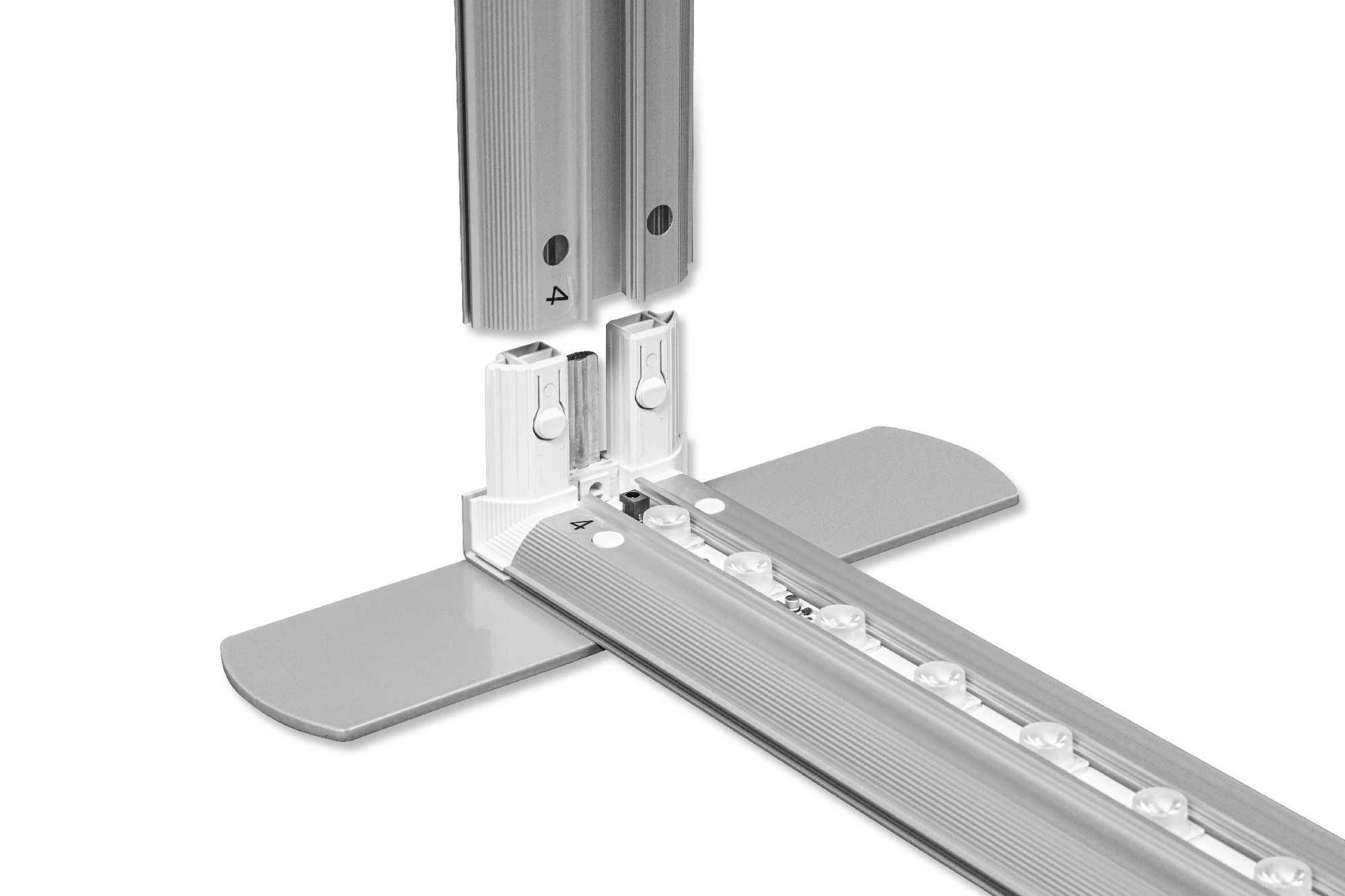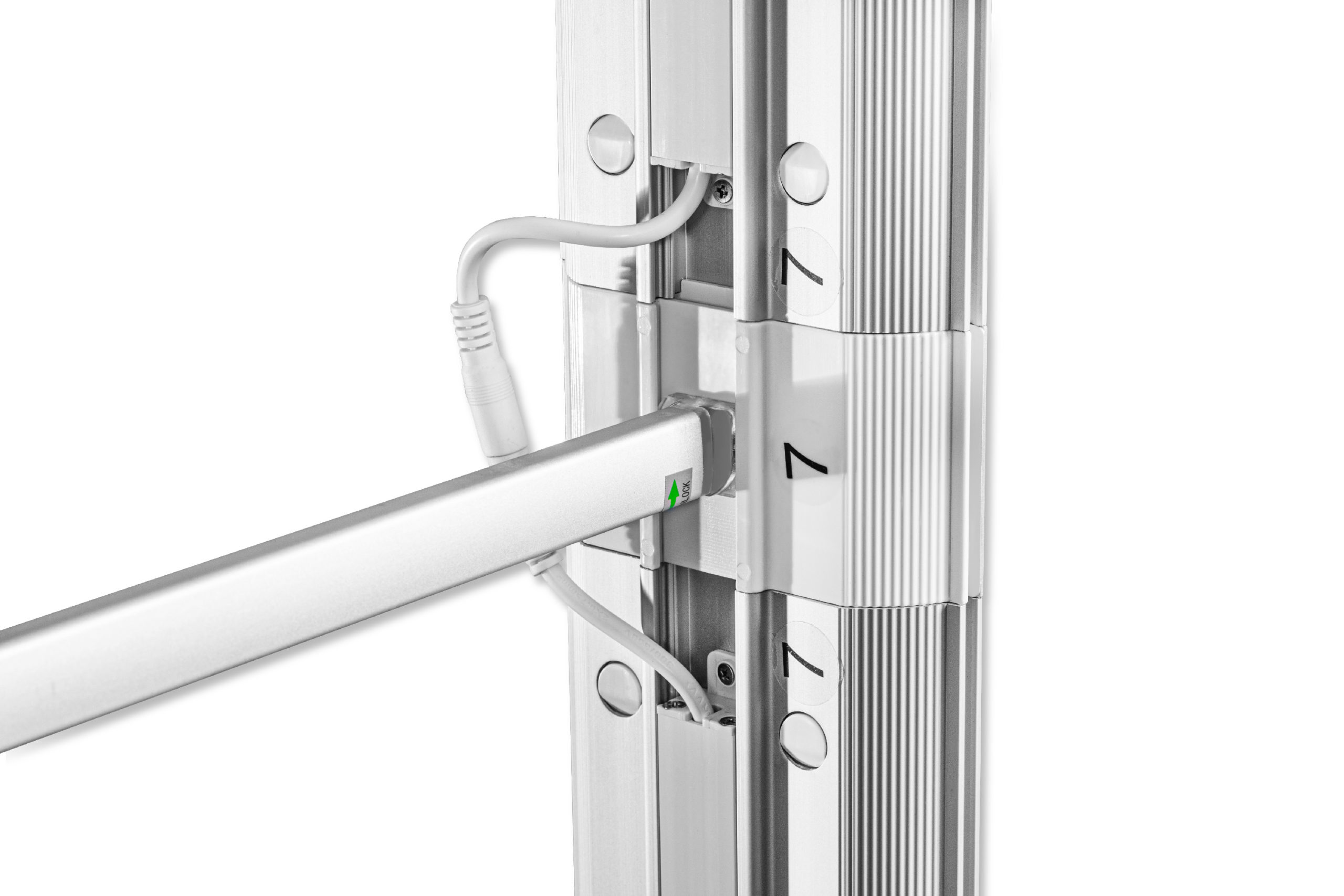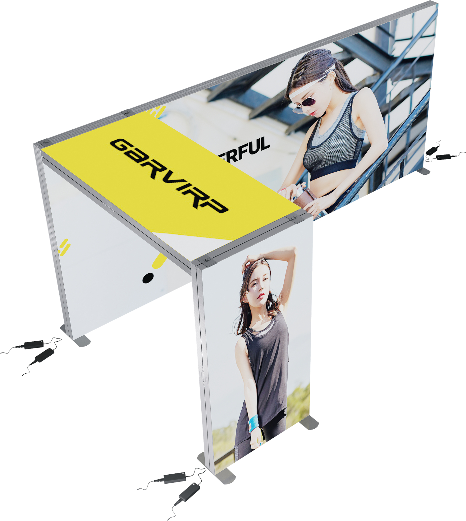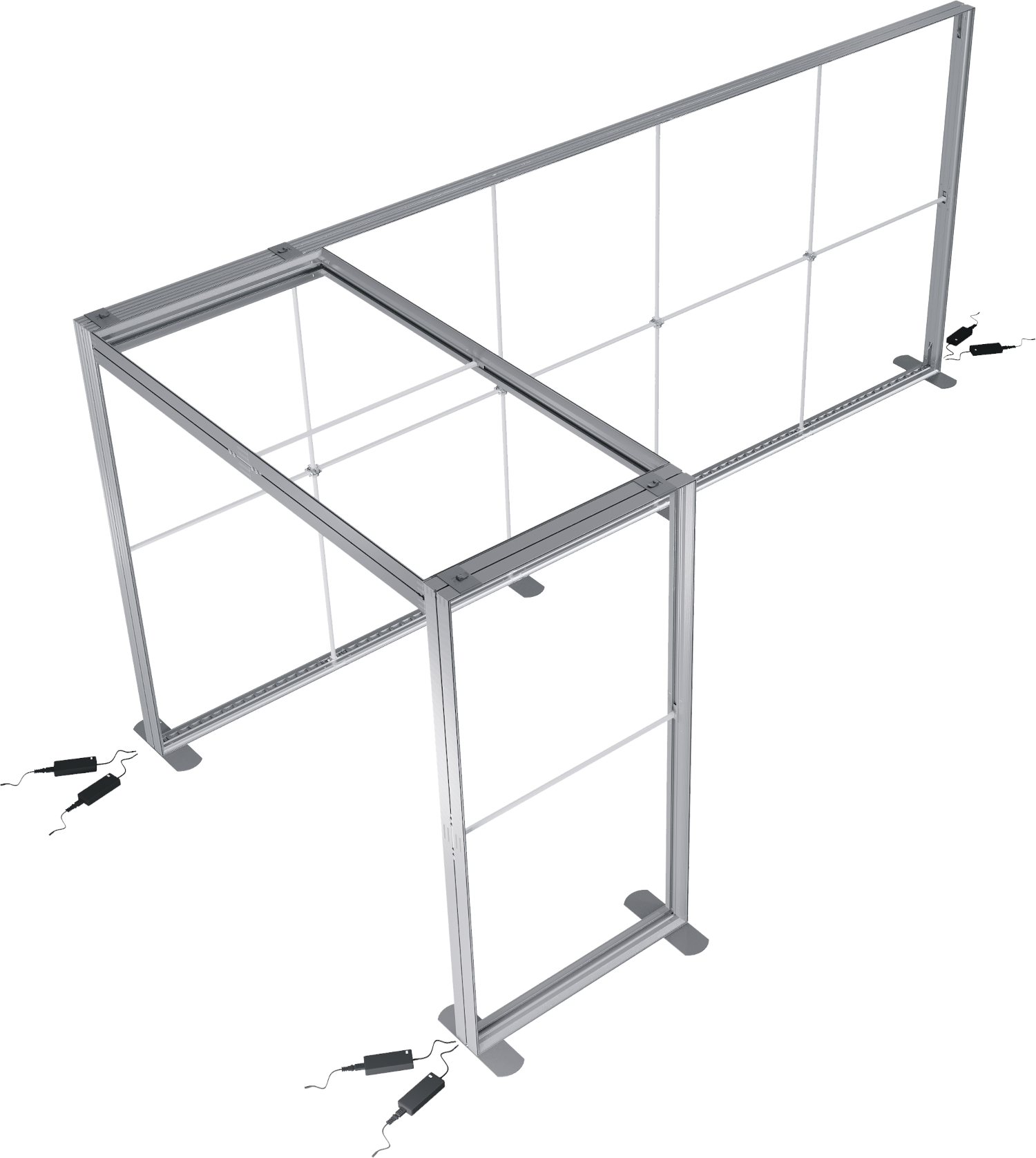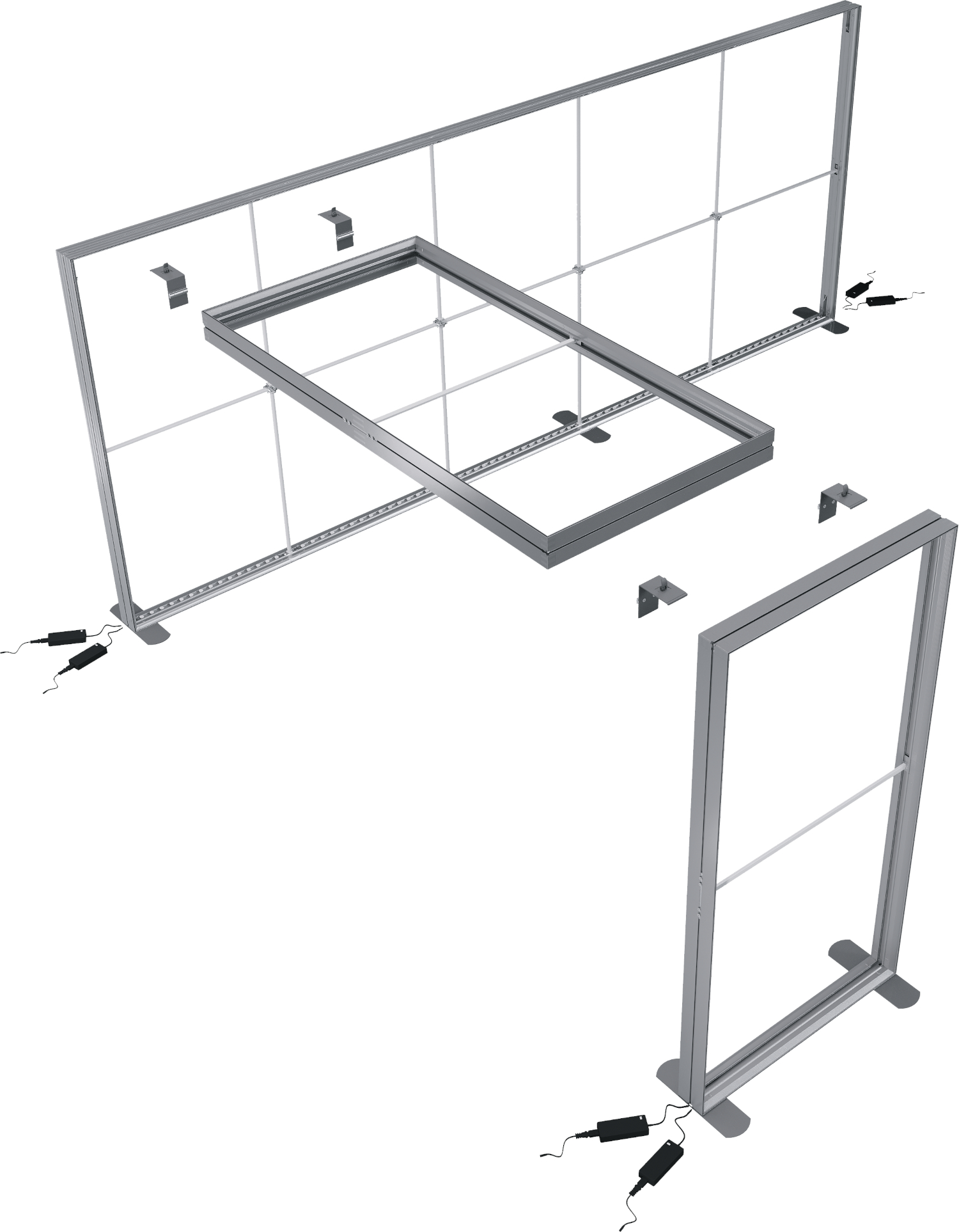 A moduláris felépítésnek köszönhetően a LUMIX™ rendszerek bővíthetők. Össze is kapcsolhatók egymással, így egyedi vásári standok hozhatók létre – példák alább. A kiegészítők külön kaphatók.